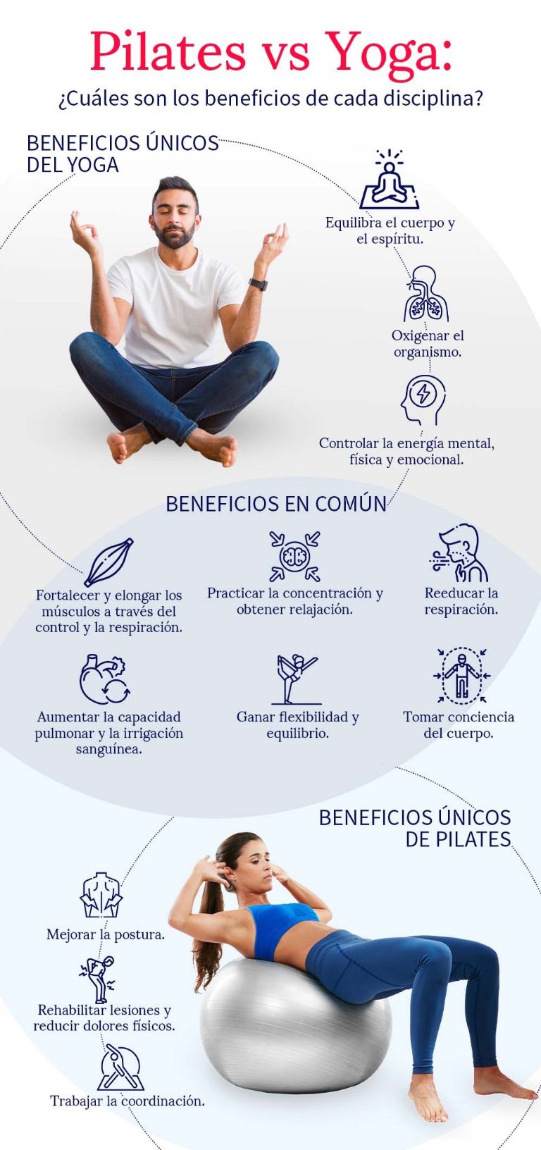 Puso énfasis en que a pesar de sus diferencias, la respuesta a cuál de ambas es mejor depende de los objetivos de salud y fitness que busque cada quien, pues si estás buscando una práctica que te ayude a mejorar tu fuerza, flexibilidad y equilibrio el yoga o los pilates pueden ser buena opción, aunque para mejorar tu fuerza los segundos son tu mejor opción.
