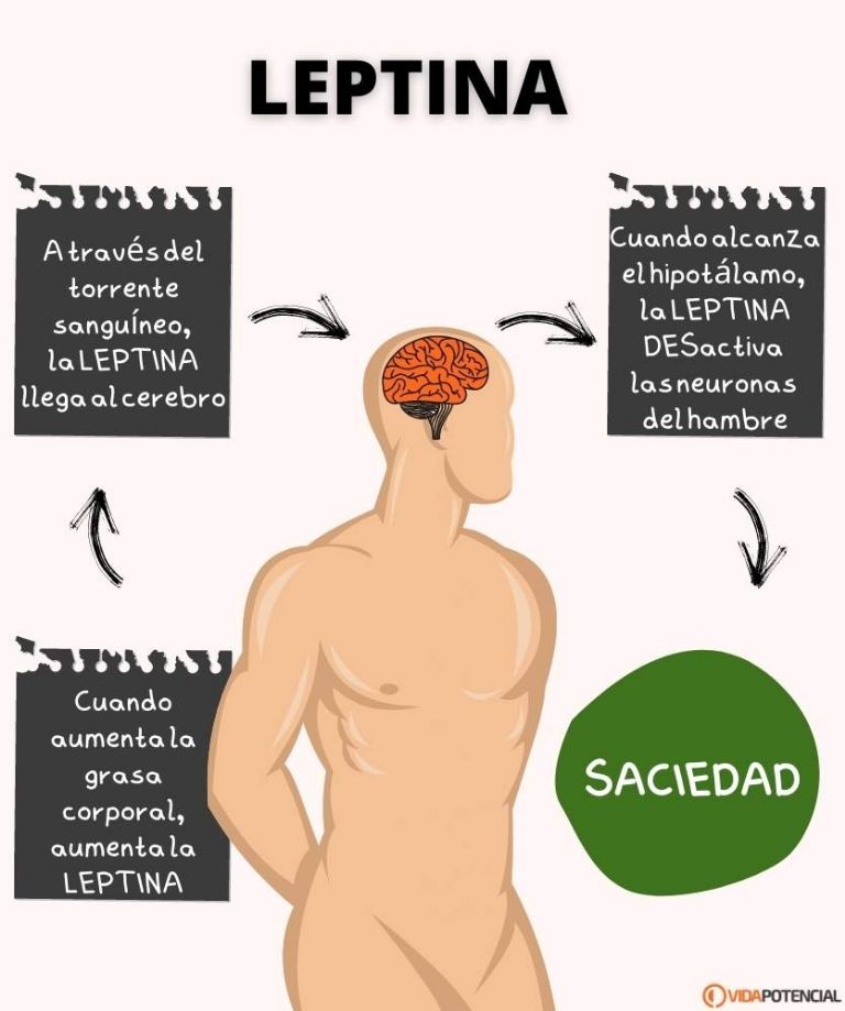 Producida por las células grasas, la leptina transmite al cerebro cuando el cuerpo posee reservas suficientes de energía, haciendo que interprete que ya no es necesario seguir comiendo y determinando así que el cuerpo guarde o no grasas, por lo que es necesario mantenerla en niveles adecuados para bajar de peso y cuidar nuestra salud, principalmente a través de los alimentos que ingerimos.