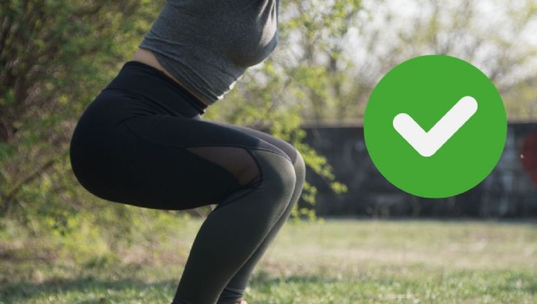 - Sentadillas. Trabajan todo el tren inferior del cuerpo incluyendo cuádriceps, isquiotibiales y glúteos, bastará con ponernos de pie con los pies separados a la anchura de los hombros y las rodillas ligeramente flexionadas para luego bajar el cuerpo hasta que los muslos estén paralelos al suelo.