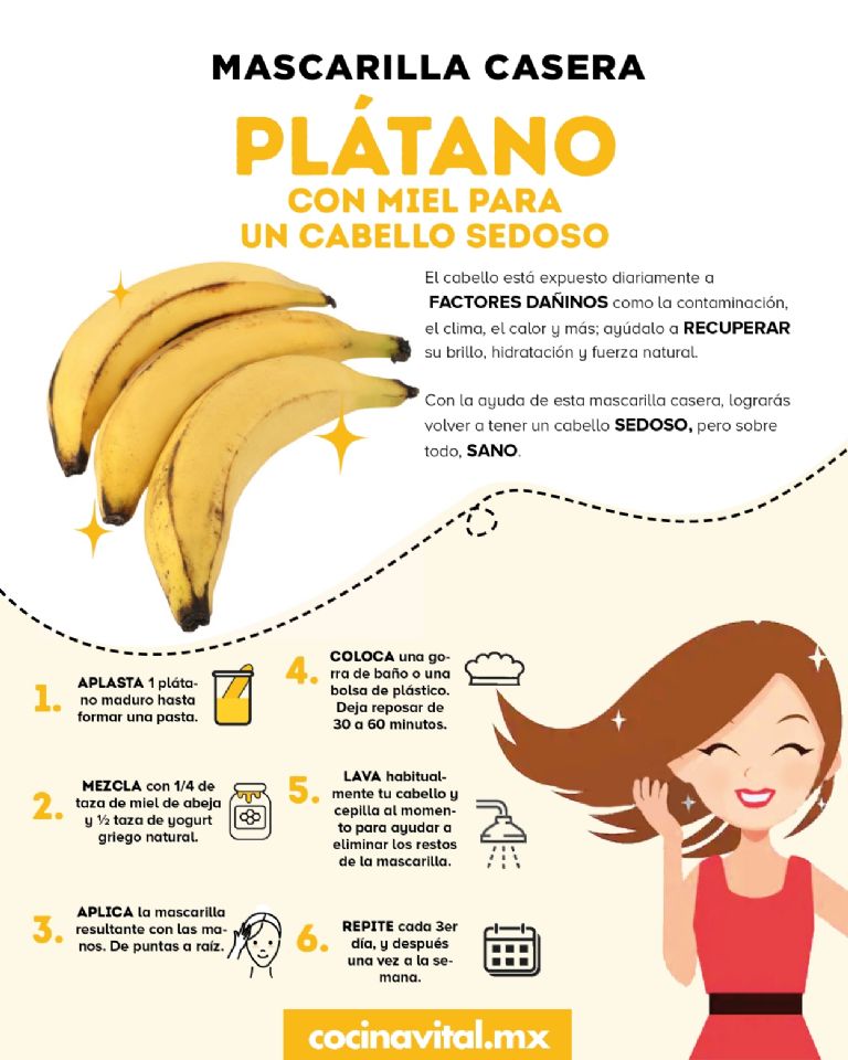 Gracias a que sus propiedades que ayudan a retrasar la aparición de los signos de la edad y permiten absorber y retener la humedad, el plátano estimula la producción de colágeno y elastina en el cuerpo y mejora la elasticidad de la piel, mientras que la clara de huevo contiene vitamina B y minerales como selenio, magnesio, potasio, calcio, cobre, fósforo, hierro y zinc, ofreciendo propiedades humectantes y antimicrobianas, además de que ayuda a exfoliar el cutis y mejora la textura.