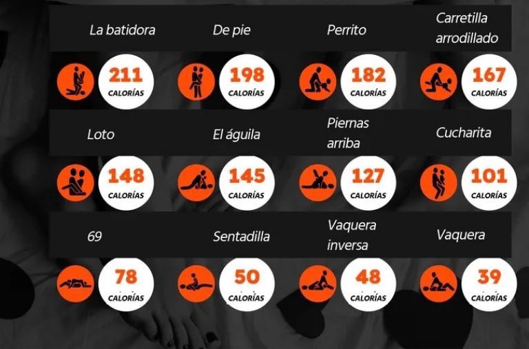 Según un estudio, correr en una cinta consume 8.15 calorías por minuto, mientras que en el sexo queman 3.6 calorías por minuto, aunque al medir el nivel de satisfacción el 98 por ciento de las personas preferían las relaciones sexuales a correr pues además de que libera estrés y genera sensación felicidad, también es ejercicio y elimina toxinas y grasas que no son beneficiosas para el organismo y más si lo haces mediante estas 4 posiciones: