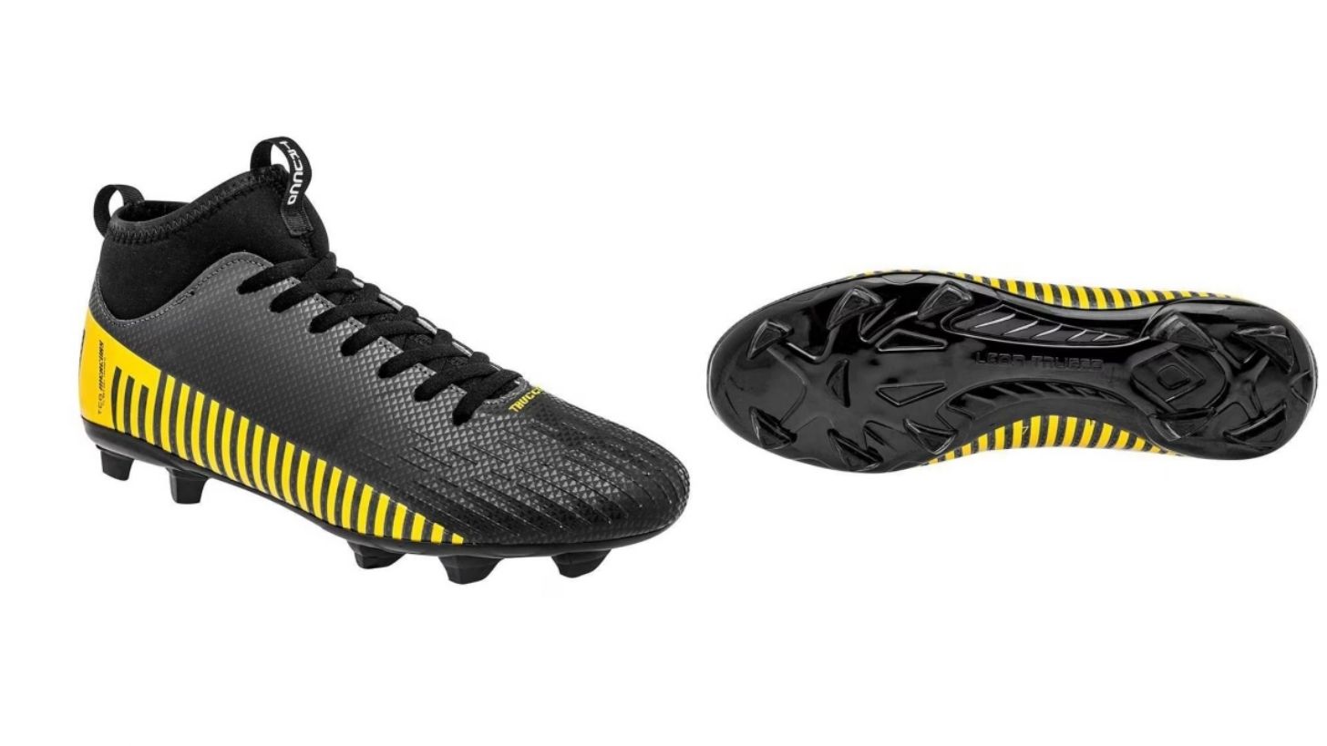 - Modelo Mercury3-01C de corte y suela sintéticos, forro textil en color gris, con agujeta ajustable y corte estampado, con suela de 11 tachones (siete delanteros y cuatro traseros), ideales para jugar en césped natural. De 2 mil 168 a 866 pesos.