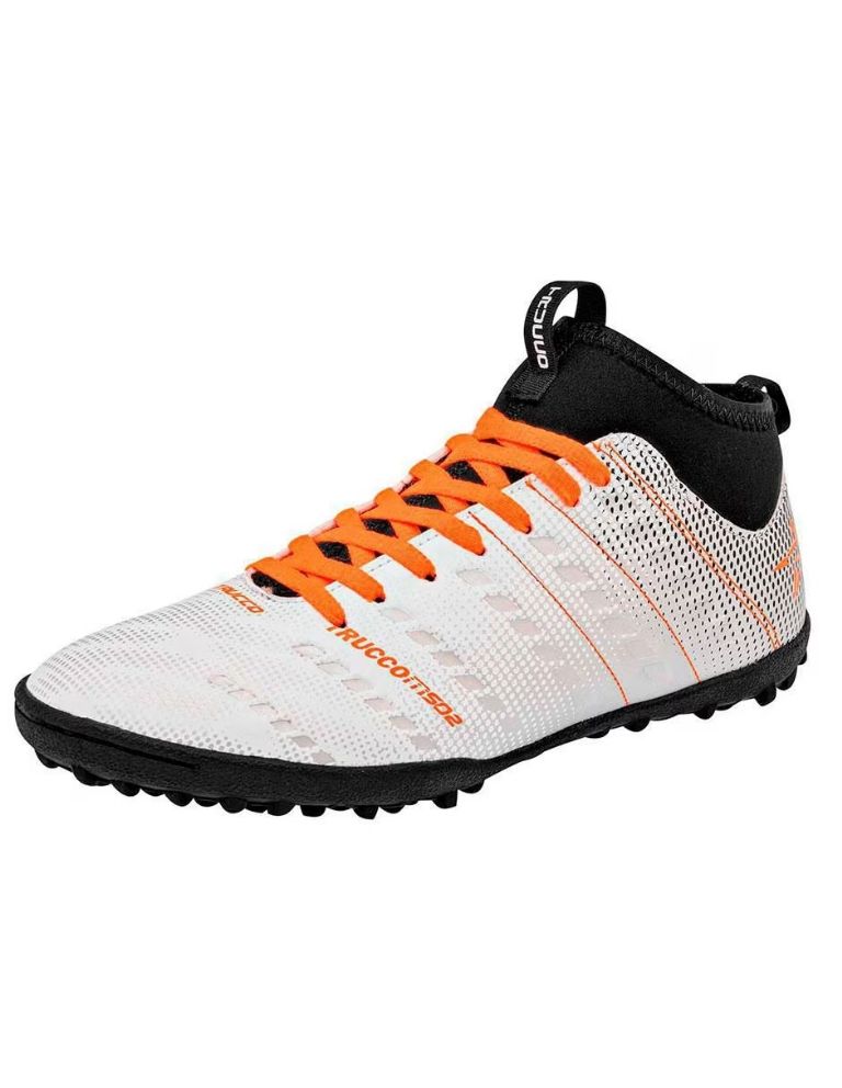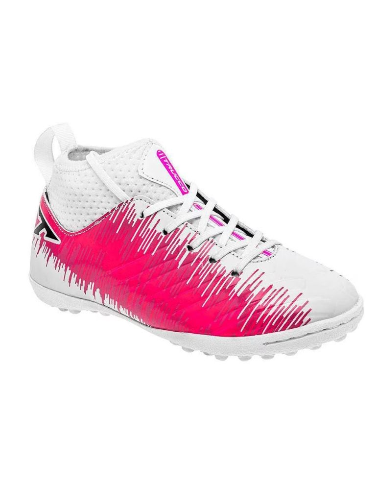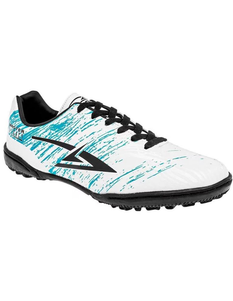 - Tenis para futbol turf color blanco modelo Soccer13-02C de corte, forro y suela blanca sintéticos, estilo multitaco para césped artificial con ajuste de agujetas y corte estampado. De 2 mil 43 a 871 pesos.