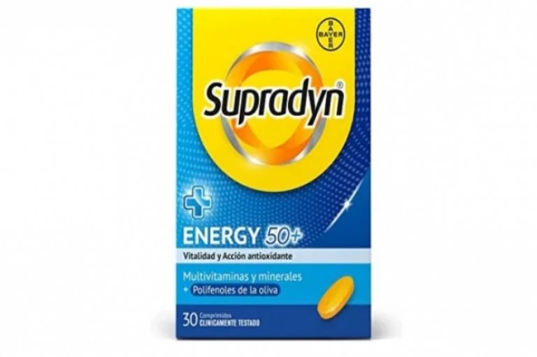 - SUPRADYN ACTIVO 50+: Ayuda a mantener la energía y vitalidad al complementar la dieta habitual, pues su fórmula incluye hasta 12 vitaminas, nueve minerales, polifenoles de la oliva, antioxidantes y vitaminas que ayudan al metabolismo energético para tratar el cansancio y el envejecimiento.