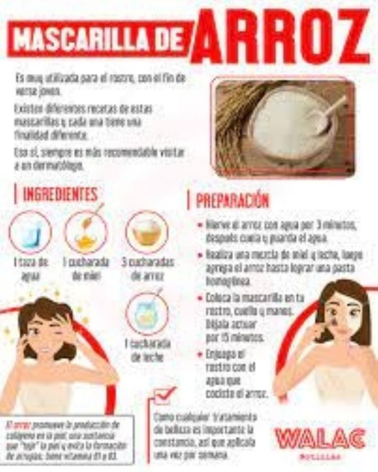 Es una mascarilla de arroz que es muy usada por las coreanas, quienes se distinguen, entre otras cosas, por disimular el paso de los años como nadie con esta receta perfecta para suavizar, limpiar y aclarar la piel, previniendo así los signos de la edad por más tiempo y logrando un cutis fresco y rejuvenecido.