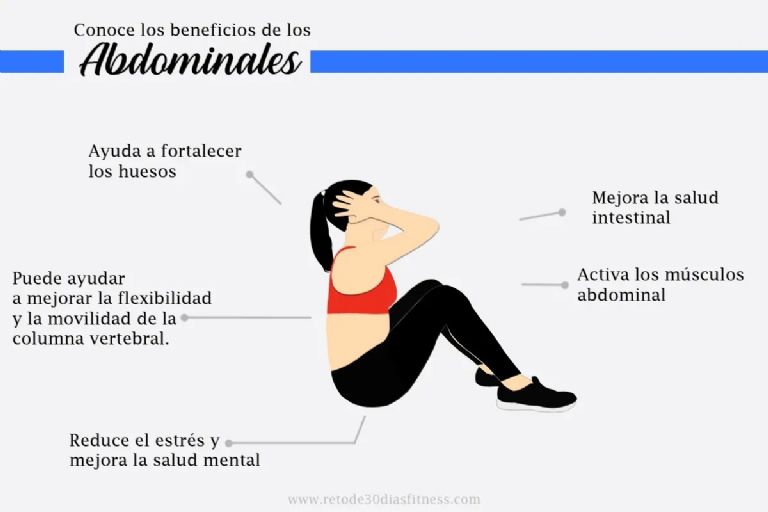 - CRUNCHES (abdominales tradicionales): Acuéstate en el suelo con las rodillas dobladas y los pies en el suelo, para colocar las manos detrás de la cabeza o cruzas sobre el pecho y levantar la parte superior del cuerpo (tres series de 15 a 20 repeticiones).