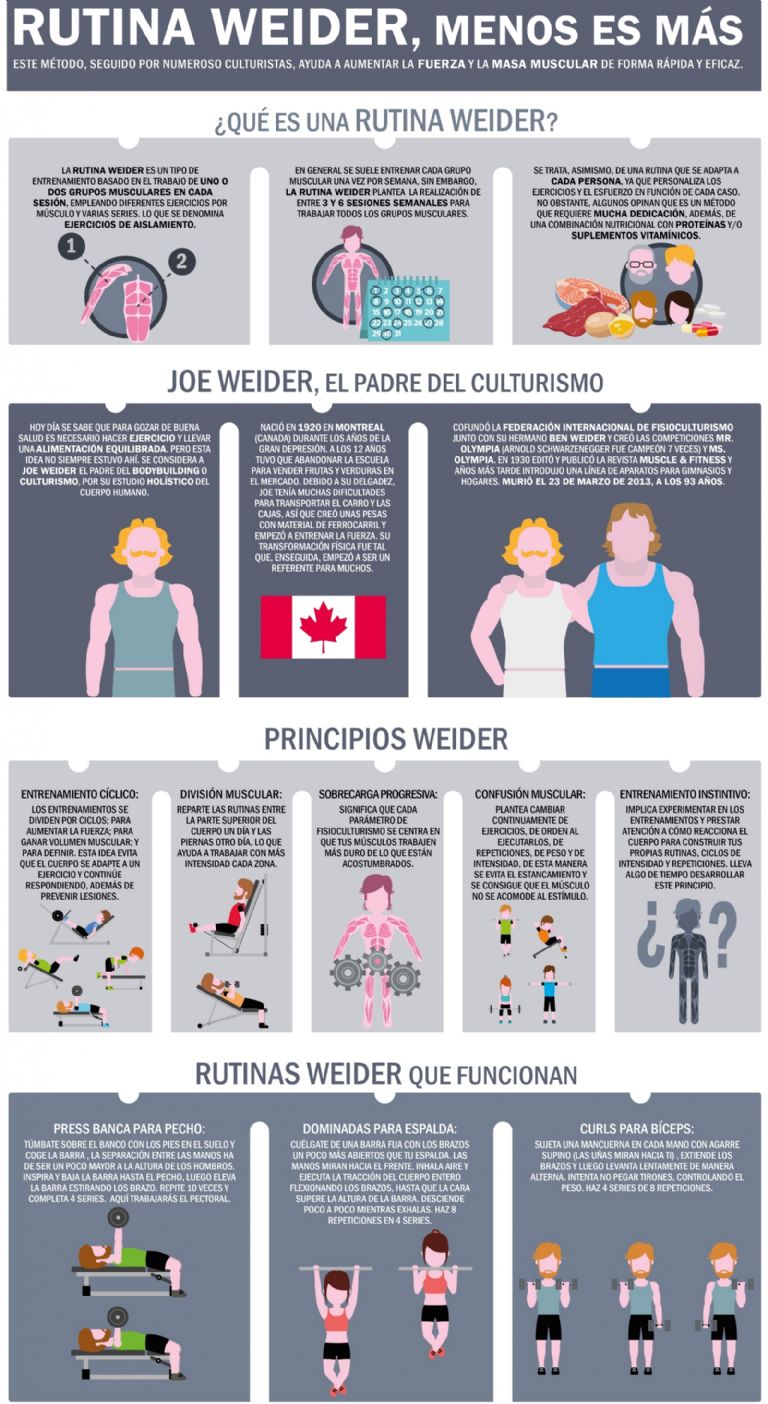 Famosa en los años 40 entre deportistas de alto rendimiento y fisicoculturistas, la Rutina Weider se enfoca en un entrenamiento dividido para trabajar grupos de músculo por separado, haciéndolo uno de los programas más estructurados que, no obstante, no es para todos pues aunque sus beneficios son muchos, existen varias consideraciones que debes conocer.