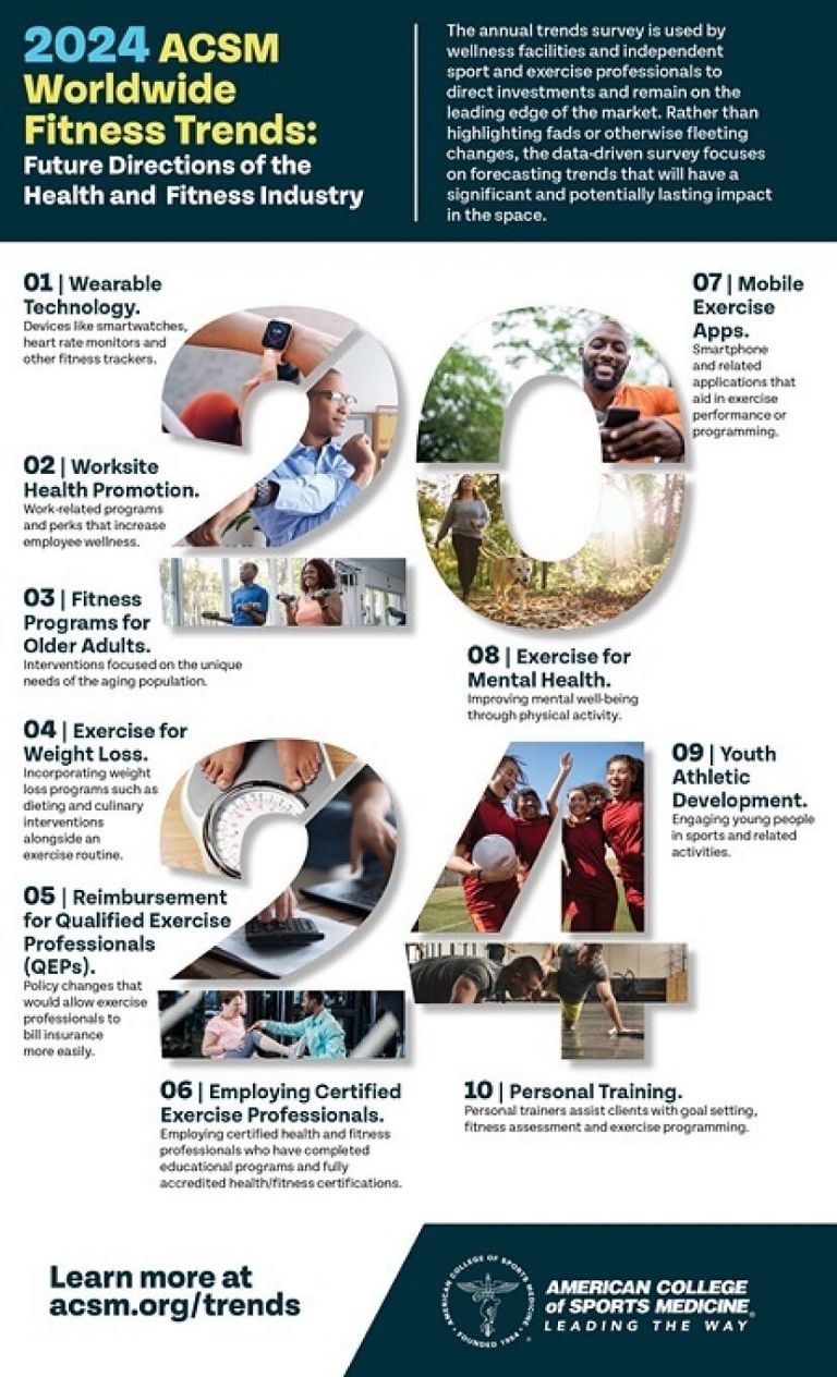 - Ocupará un lugar de honor en 2024 pues más allá de subirnos a la elíptica o usar las máquinas, buscaremos una conexión entre el trabajo físico y el mental, por lo que los gimnasios se convertirán ahora en centros de bienestar global que ofrecerán servicios como meditación guiada, nutrición, gestión del estrés, fisioterapia, asesoramiento personalizado y hasta apoyo estético.