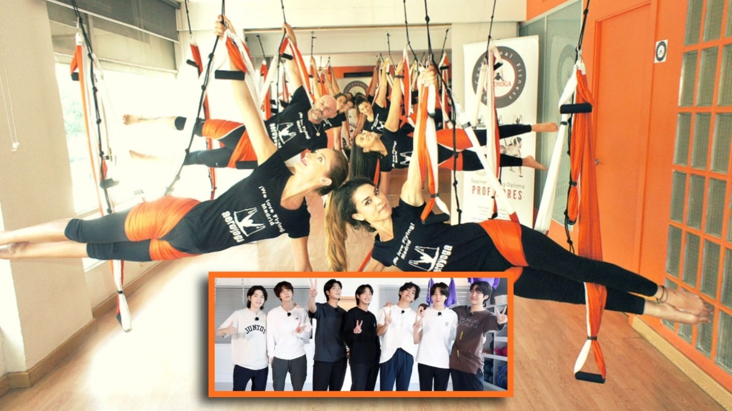 Como uno de los grupos más populares del k-pop y luego de años de entrenamiento, los integrantes de BTS recomiendan el Aeroyoga como el ejercicio ideal para conectar mente, cuerpo y respiración y que los ayudó a superar su gran proceso para convertirse en artistas profesionales.