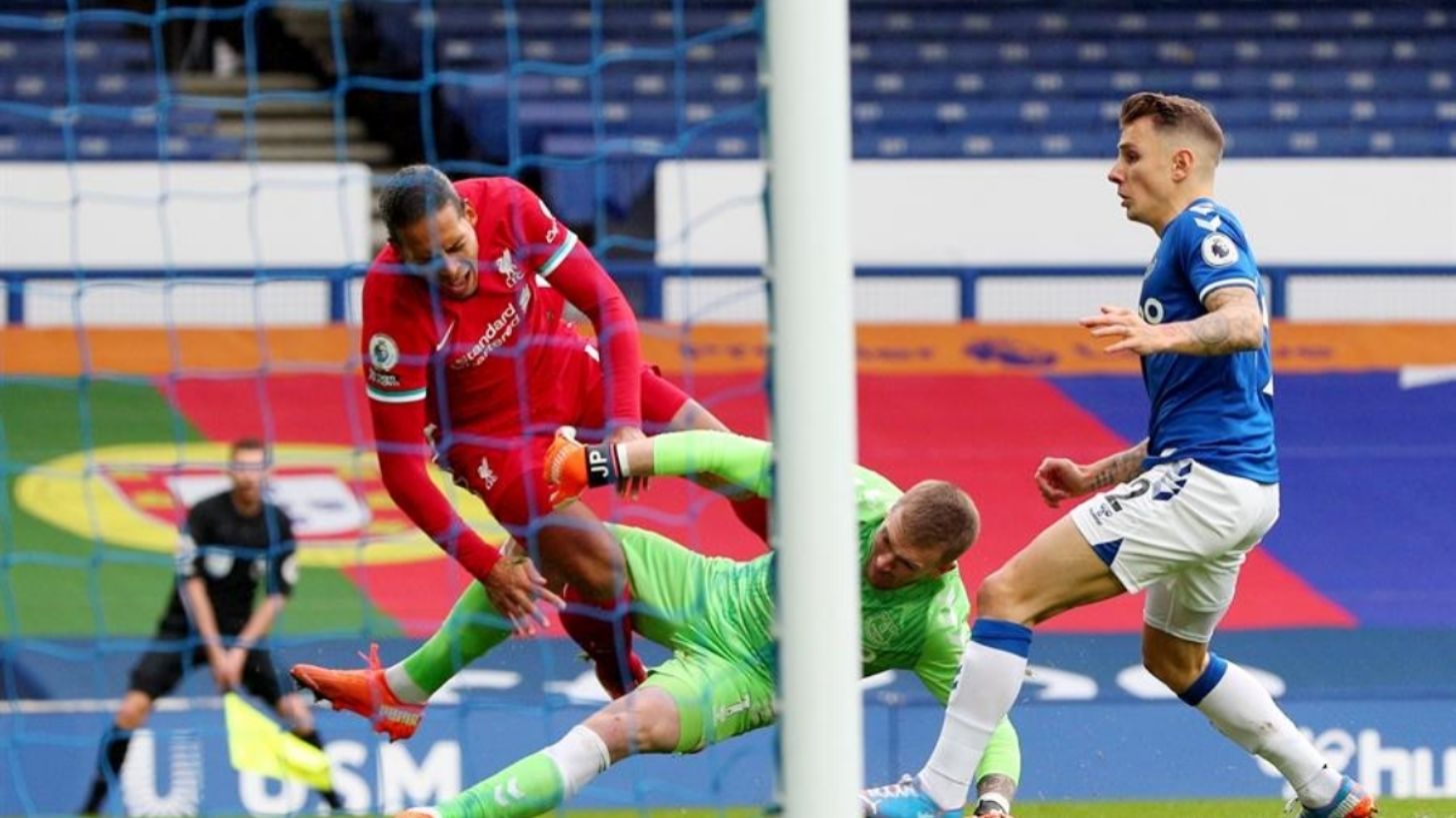 El defensa holandés, pieza importante para la obtención del título en la Premier League, salió con gestos de dolor y fue trasladado directamente al hospital, tras una jugada en la que el portero del Everton, Jordan Pickford, salió de forma temeraria, golpeando al zaguero.