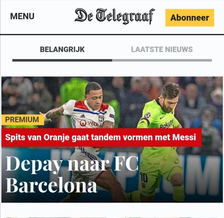 "Memphis se va a jugar al lado de Messi", publicó el rotativo holandés en su edición del martes.