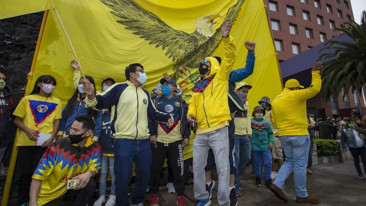 Una veintena de personas se dio cita en el hotel de concentración del América para hacerse sentir junto a los ánimos previo al partido. De hecho estuvieron en la salida de los jugadores rumbo al Estadio Azteca y de ahí acompañaron al equipo en su recorrido.