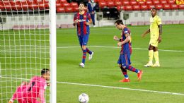Más tarde una falta de Mario Gaspar permitió a Messi abrir su cuenta personal de goles desde los once pasos a los 35' para irse arriba 3-0 sobre el Villarreal, que se mostró endeble y sin ideas en el Camp Nou.