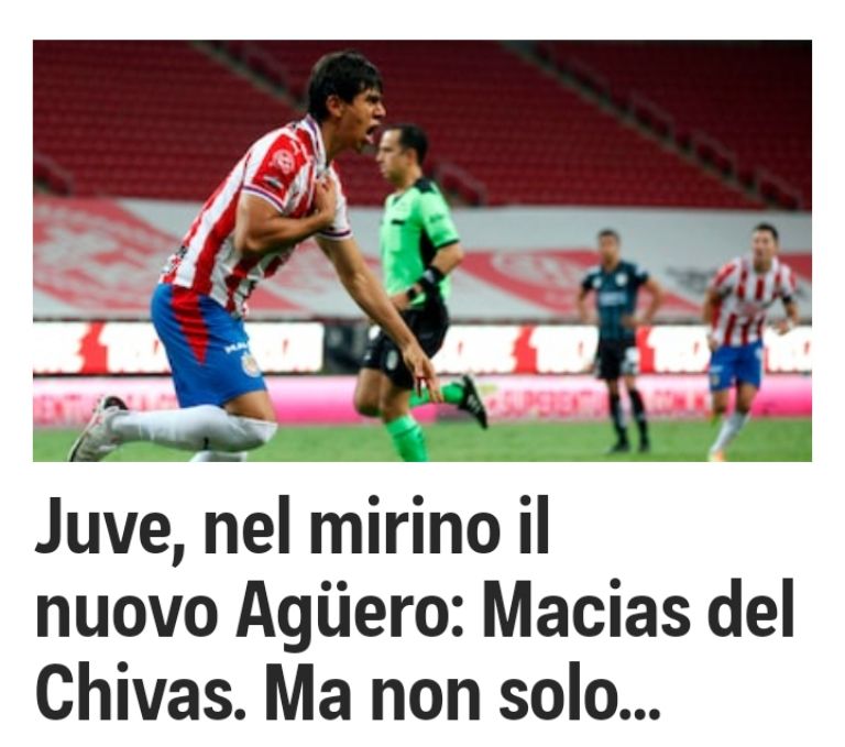 El delantero de Chivas es seguido desde hace unos meses por los visores de la Vecchia Signora. De acuerdo con la información publicada este miércoles, Macías es considerado como el ‘nuevo Kun Agüero’ en el futbol de Sudamérica y lo destacan por sus goles con el Rebaño Sagrado (6 en 17 partidos).