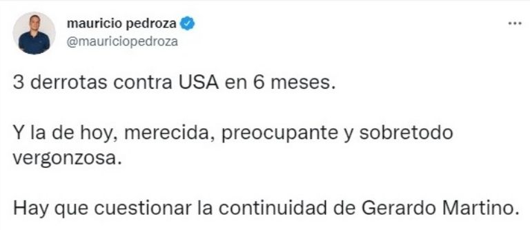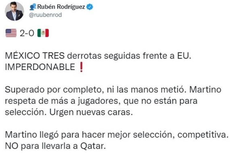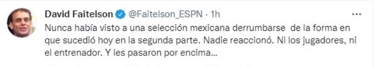 “Como lo he dicho, nuestro futbol es de plástico: sin descenso, ni ascenso, multipropiedad y repechaje. Lo de hoy es resultado de esto”, escribió José Ramón Fernández. “México le cede a Estados Unidos el título de ‘El Gigante de la Concacaf’”, sentenció.