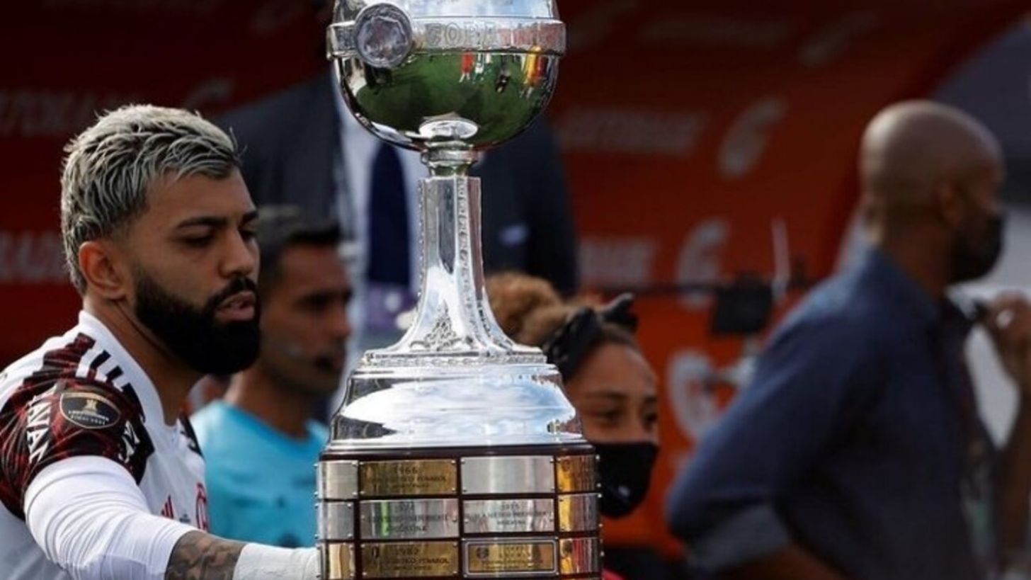 Las cámaras de televisión captaron el momento en el que ‘Gabigol’ tocó con la mano derecha el trofeo del torneo más importante de la Conmebol.