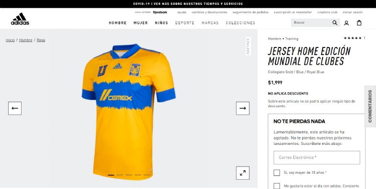 En la página de Adidas, encargada del uniforme de los Tigres se puede ver el jersey, pero no se encuentra disponible para compra, mientras en la Tienda Oficial del club, simplemente no está.