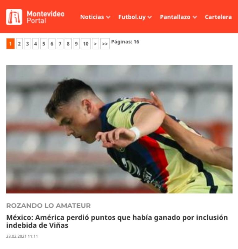 “Rozando lo amateur. Méxcio: América perdió puntos que había ganado por inclusión indebida de Viñas”, publicó el sitio web uruguayo ‘Futbol Uy’, que subrayó el fallo administrativo y señalaron que el delantero uruguayo “estuvo en el banco de suplentes sin estar registrado”.