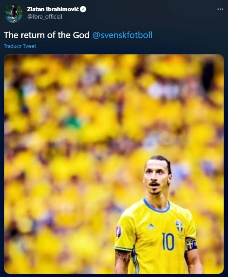 Ibrahimovic, por su parte, también anunció su regreso a la Selección de Suecia con un particular y desafiante mensaje en redes sociales. "El retorno de Dios", junto a una foto suya con la camiseta del equipo nacional.