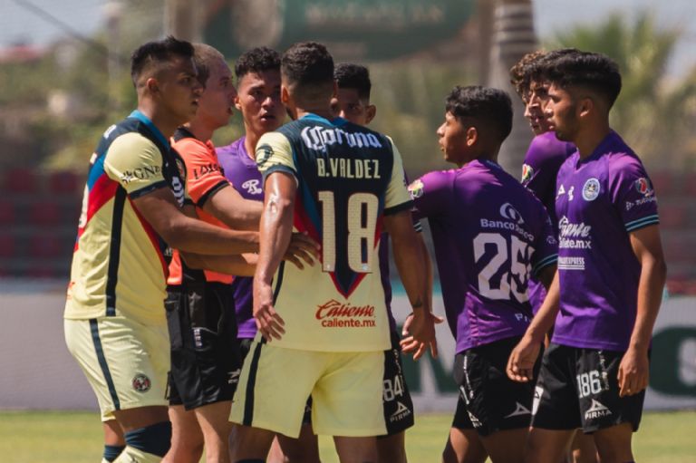 Bruno Valdez ocasionó un conato de bronca al realizar una fuerte entrada en contra de Alan López en el juego de este viernes entre América y Mazatlán FC de la Jornada 12 del Guard1anes 2021 de la Liga MX Sub-20.