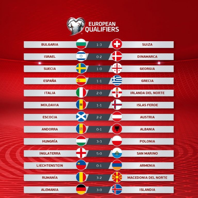En Londres, sin brillar pero siendo contundente, Inglaterra goleó (5-0) a una selección humilde como San Marino para pasar a liderar el Grupo I, por delante de Albania, que batió 1-0 a Andorra, y Hungría y Polonia, que igualaron 3-3.