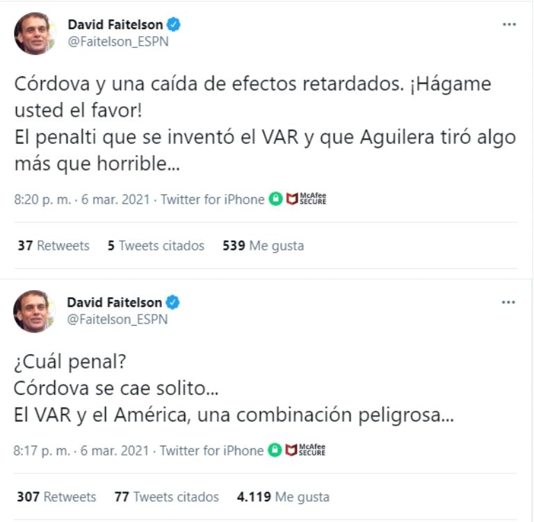 Ante esto el comentarista de la cadena ESPN, el polémico David Faitelson, se sumó a las críticas en redes sociales por la actuación del árbitro y el VAR sobre la decisión en la jugada.