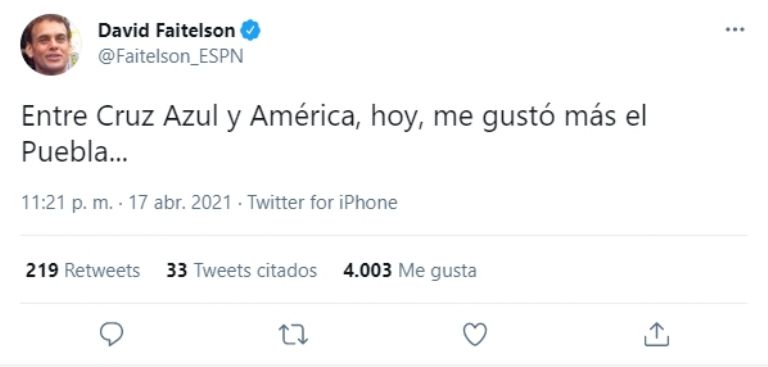 "Entre Cruz Azul y América, hoy, me gustó más el Puebla...".