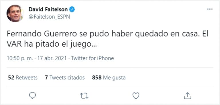 "Fernando Guerrero se pudo haber quedado en casa. El VAR ha pitado el juego...".