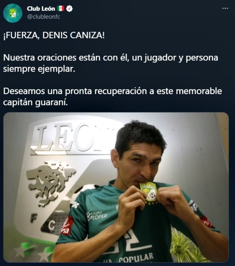 De hecho, La Fiera compartió un mensaje de apoyo a Denis Caniza en su cuenta oficial de Twitter por su delicada situación de salud. "¡FUERZA, DENIS CANIZA! Nuestra oraciones están con él, un jugador y persona siempre ejemplar. Deseamos una pronta recuperación a este memorable capitán guaraní", escribieron.