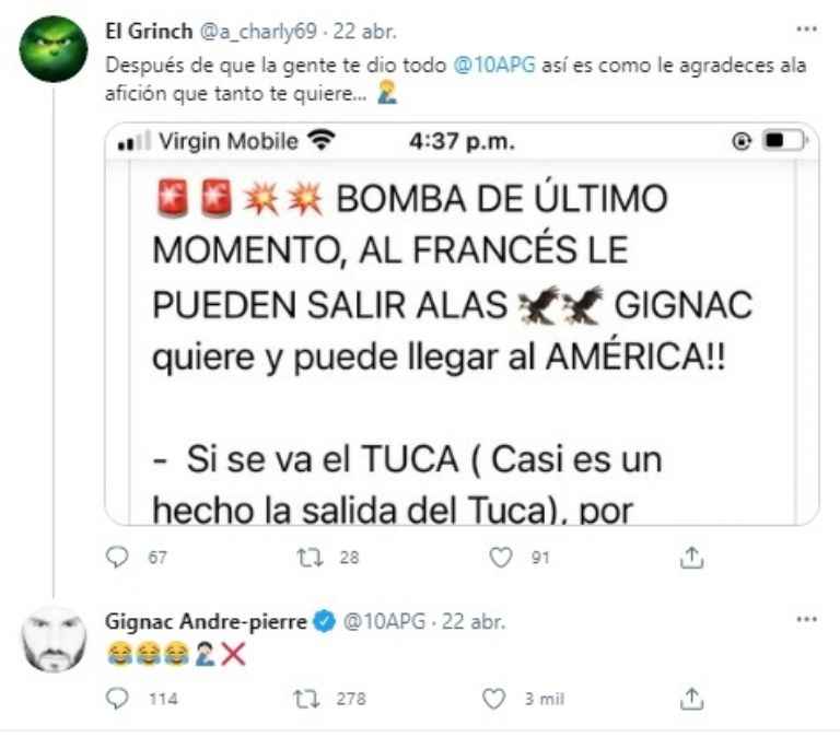En Twitter comenzó a circular la noticia de que André Pierre Gignac saldría de Tigres para llegar al América, lo que emocionó a varios de los aficionados del cuadro de Coapa.