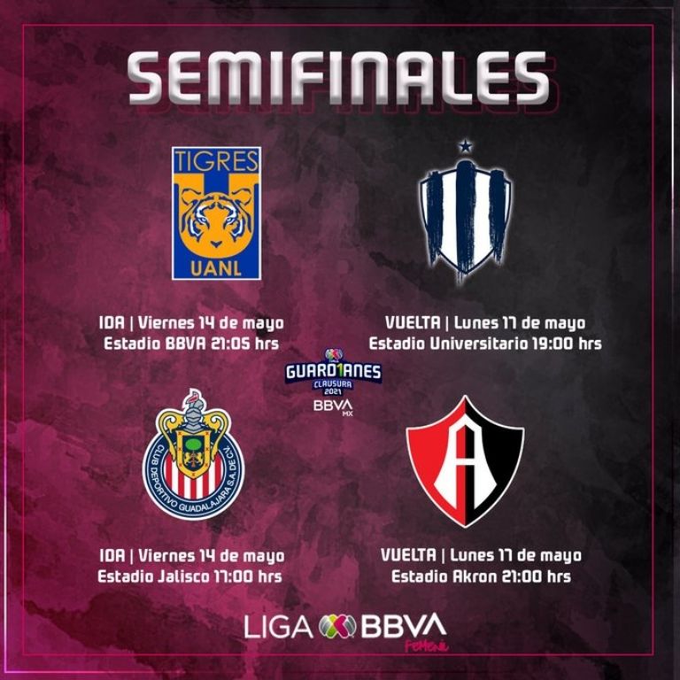 Los cuatro mejores equipos de la Liga MX Femenil disputarán las semifinales del Guardianes 2021, en dos series de gran rivalidad para los aficionados del estado de Nuevo León y La Perla Tapatía.