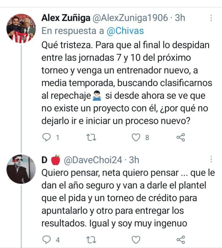 Por otro lado, hubo hinchas que dieron su voto de confianza a 'Vuce', pero dejaron claro que si no llegan refuerzos de calidad, no se pueden esperar mejores resultados la siguiente campaña.