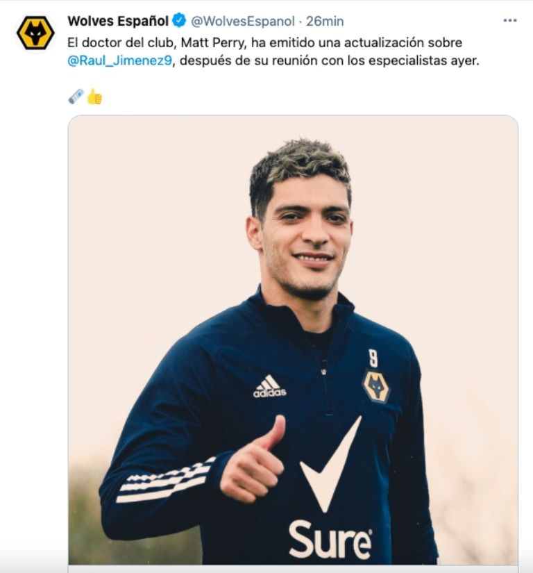 Matt Perry, jefe de los servicios médicos del Wolverhampton, anunció dio a conocer una última actualización sobre el estado de salud de Raúl Jiménez, quien, desde el 29 de noviembre, no ha podido regresar a las canchas debido a una cirugía en la cabeza.