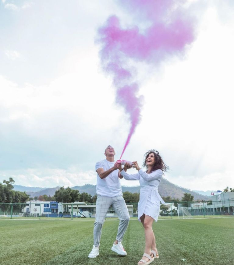 En la imagen se ven muy felices, pues les tomaron la fotografía en el momento exacto en el que se enteraron el sexo del bebé.
