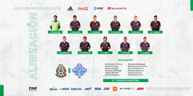 Otra sorpresa es la inclusión de Diego Lainez por la izquierda, en su primera aparición como titular del Tricolor mayor bajo el mando del estratega argentino.