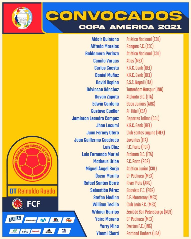 Las selecciones de Colombia, Chile y Uruguay presentaron sus listas oficiales, para disputar la próxima Copa América 2021.