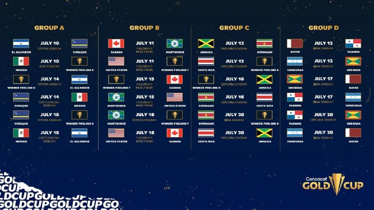 El primer partido ante Guayana Francesa/Trinidad y Tobago, será el sábado 10 de julio a las 21:00 horas del centro de México en la cancha del AT&T Stadium de Texas.