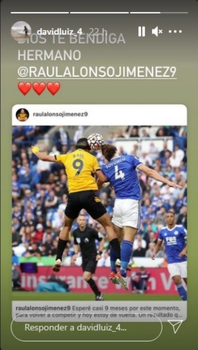 Ante ello, ese mismo día David Luiz publicó en sus redes sociales: “Triste día para nosotros. Tenemos que luchar juntos hasta el final. También quiero agradecer por todos los mensajes y pedir a todos que oren por Raúl Jiménez. Recupérate pronto hermano”.