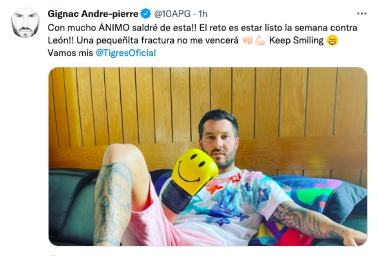 Andrés-Pierre Gignac, delantero de Tigres, reveló que presentó una fractura y estará fuera de las canchas por al menos tres partidos, esperando su regreso para el juego contra el León, correspondiente a la Jornada 8 del Grita México 2021.