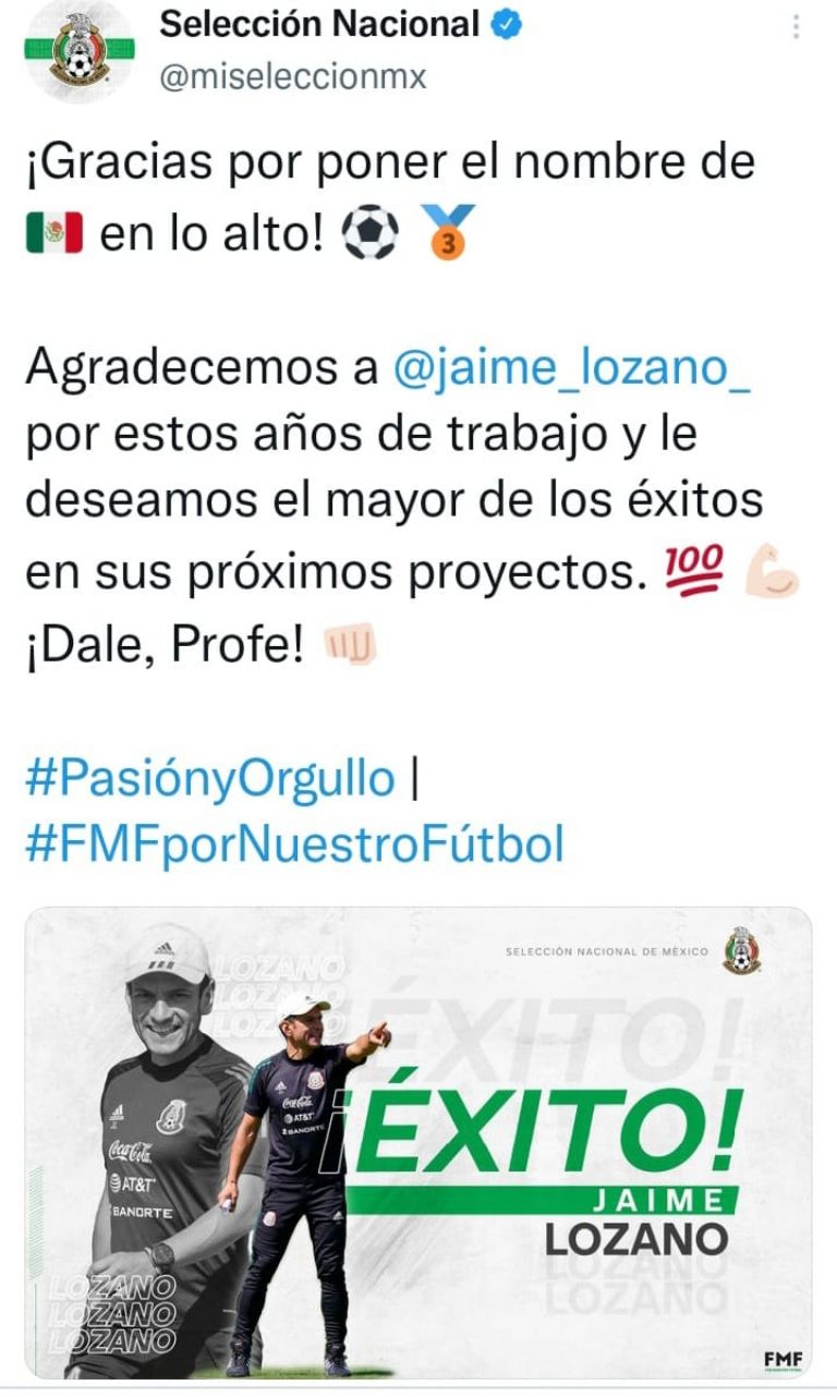 Jaime Lozano no es más el director técnico de la Selección Mexicana Sub-23, así lo confirmó el propio estratega durante una conferencia de prensa donde estuvo acompañado por Yon de Luisa, presidente de la Federación Mexicana de Futbol.