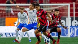 El delantero sinaloense no le pegó con mucha fuerza a la pelota, pero rebotó dentro del área chica y el guardameta tapatío no pudo hacer nada para evitar la caída de su arco.