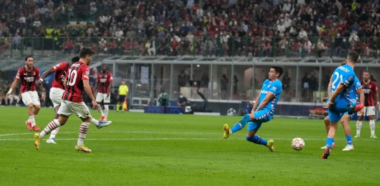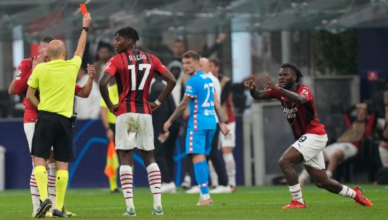 El campeón de LaLiga de España sufrió, pero en menos de 10 minutos consiguió darle la vuelta a un partido muy luchado, en el que se puso en ventaja el equipo local, con gol del portugués Rafael Leao, con tiro razo y cruzado que hizo explotar el mítico Giuseppe Meazza, aunque nueve minutos después vino la expulsión que los dejó en inferioridad numérica.