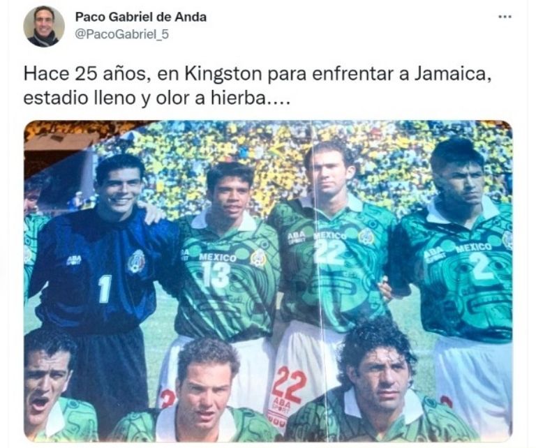 A través de su cuenta de Twitter, Francisco Gabriel de Anda publicó una imagen de la Selección Mexicana que visitó a los reggae boyz en 1997, año en que se disputaba la eliminatoria mundialista de Concacaf rumbo al Mundial de Francia 1998.