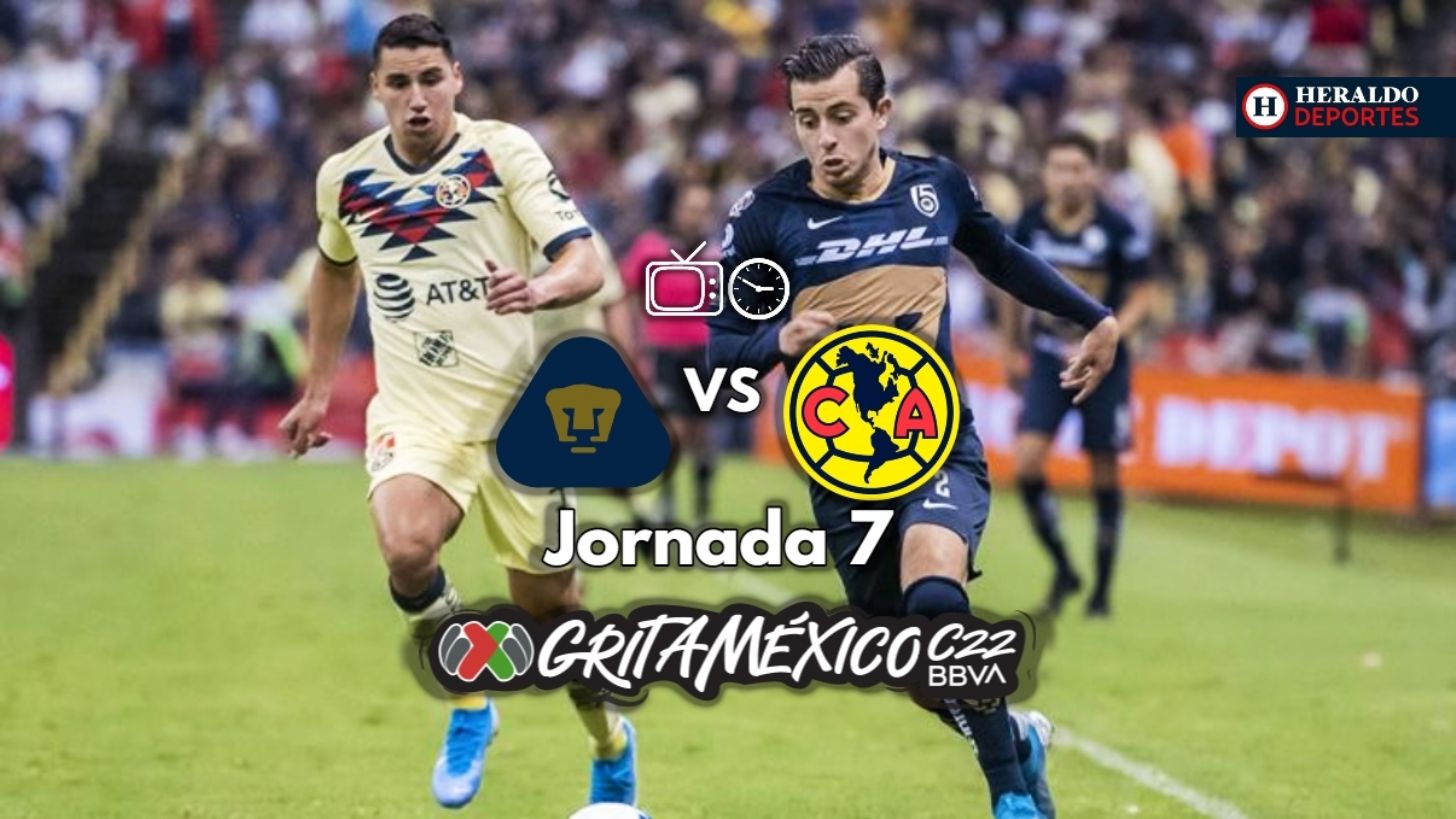 Los Pumas de la UNAM reciben a las Águilas del América en el Estadio Olímpico Universitario este sábado 26 de febrero de 2022, en punto de las 21:00 horas, tiempo del centro de México. El partido correspondiente a la Jornada 7 será transmitido por TUDN (TV de paga) y Canal 5 (TV abierta.