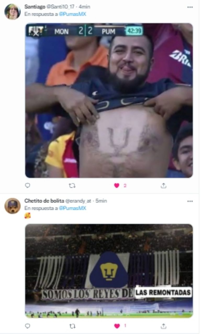 Dicha situación provocó una cascada de memes en el ambiente digital que tuvieron como protagonistas a los elementos titulares de la escuadra universitaria, así como al propio Andrés Lillini que, cabe destacar, se perderá los próximos dos juegos del Clausura 2022 después de la expulsión que sufrió en el compromiso pasado.