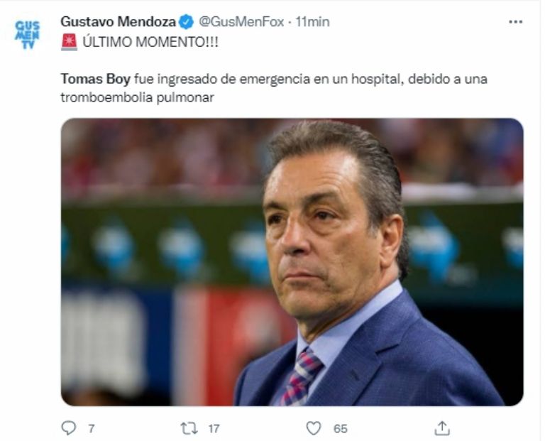 Otros medios como TVC Deportes establecen que El Jefe Boy se encuentra hospitalizado en el puerto de Acapulco, lugar en donde se encontraba antes de sufrir esta importante situación. En adición, diversos reportes en redes aseguran que el estado de salud del director técnico es de estable a delicado, por lo que las próximas horas serán claves para su recuperación.