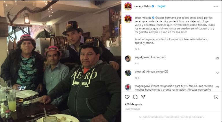 ¿Qué dijo César Villaluz en sus redes tras la muerte de su hermano?