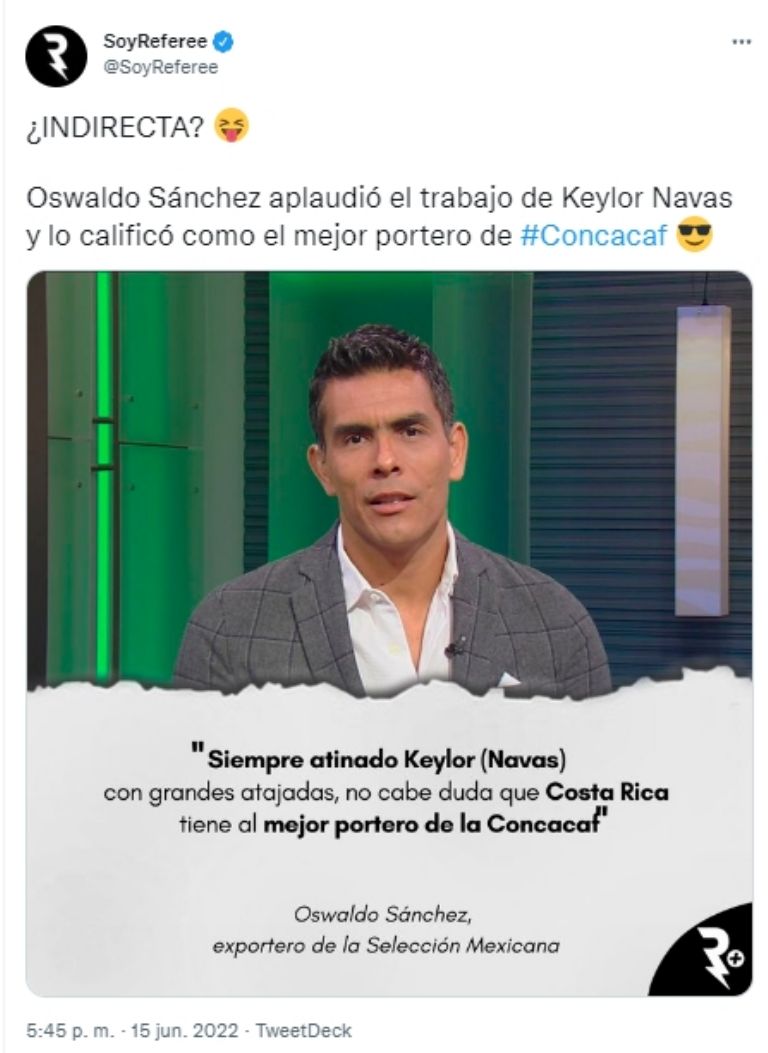 Costa Rica logró su pase al Mundial de Qatar 2022 luego de vencer por 1-0 a la Selección de Nueva Zelanda. Este resultado se pudo dar, en gran medida, por la soberbia actuación del tico Keylor Navas, arquero a quien Oswaldo Sánchez catalogó como el mejor cancerbero que la Concacaf tiene hoy en día.
