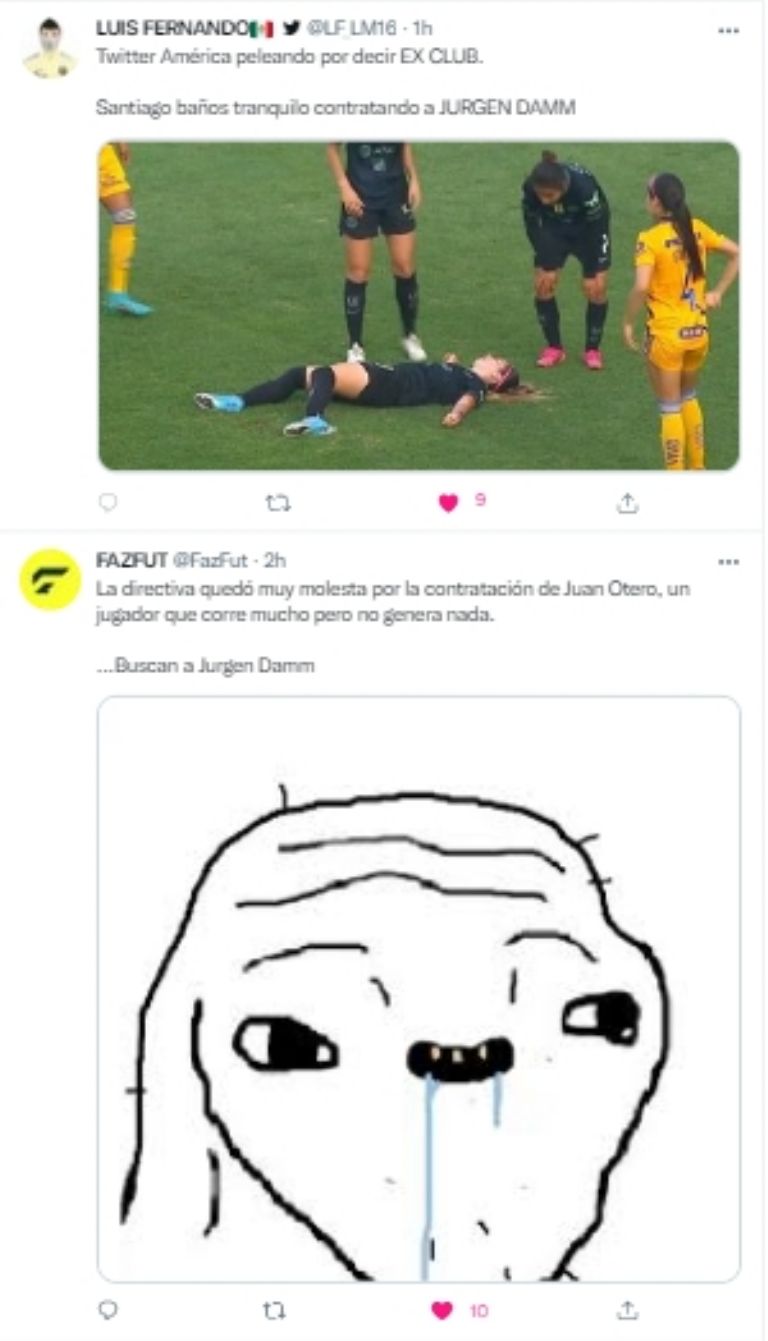 Si nada extraño ocurre, Jugen Damm estaría convirtiéndose en el primer fichaje del América de cara al torneo Apertura 2022. Esta situación ha vuelto tendencia en las redes sociales al exfutbolista de los Tigres de la UANL, por lo que los memes criticando su posible traspaso tampoco se dejaron esperar en Twitter.