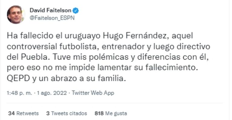 Hugo Fernández dejó este mundo a los 77 años de edad luego de formar una interesante carrera tanto deportiva como directiva en Puebla, equipo en el que llegó a ser jugador, entrenador y director deportivo en el pasado. Además, es preciso indicar que el nacido en Uruguay en 1945 realizó gran parte de su carrera en México, por lo que llegó a hacerse de un nombre importante en el país.